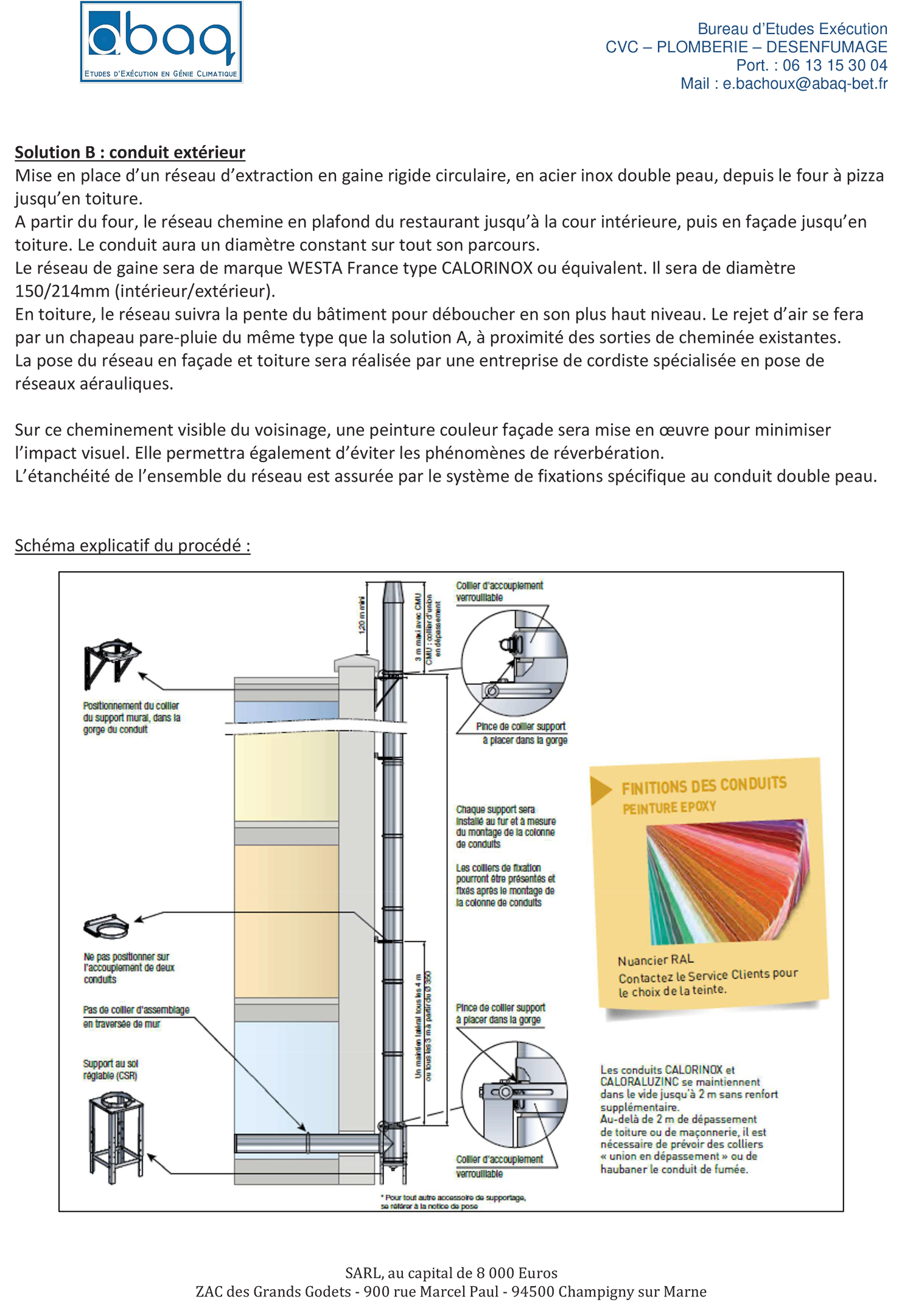 Besoins client : améliorer l’extraction des fumées du four à pizza qui entraine des nuisances envers le voisinage